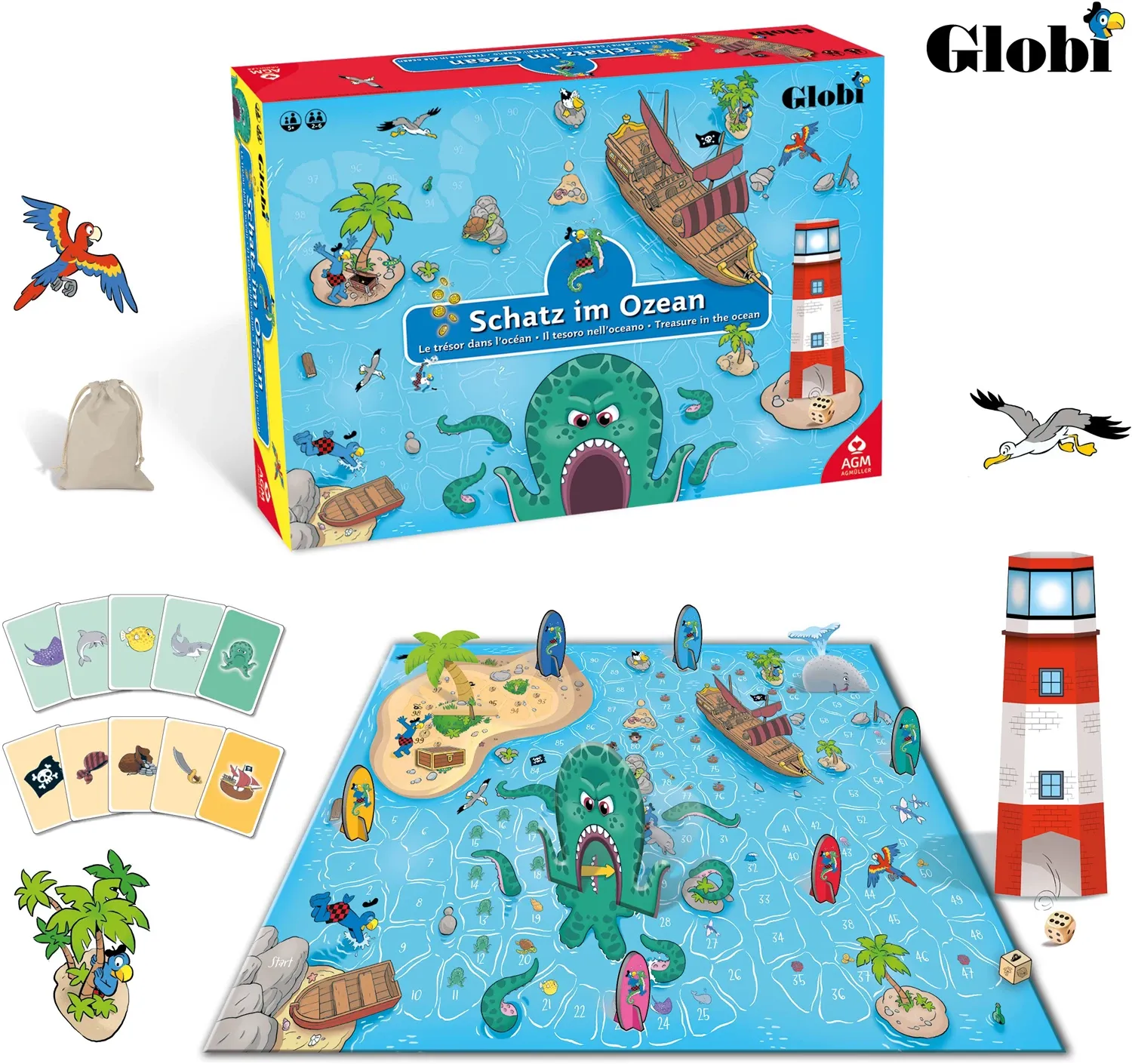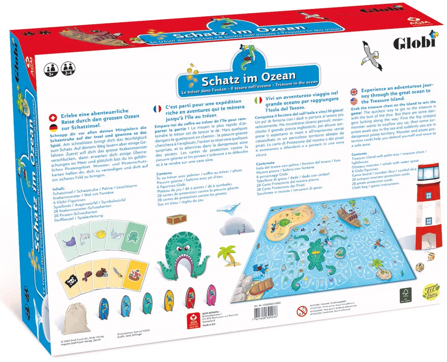 Schnapp dir vor allen deinen Mitspielern die Schatztruhe auf der Insel und gewinne so das Spiel. Am schnellsten bringt dich das Würfelglück zum Schatz. Auf deinem Weg lauern aber einige Gefahren!