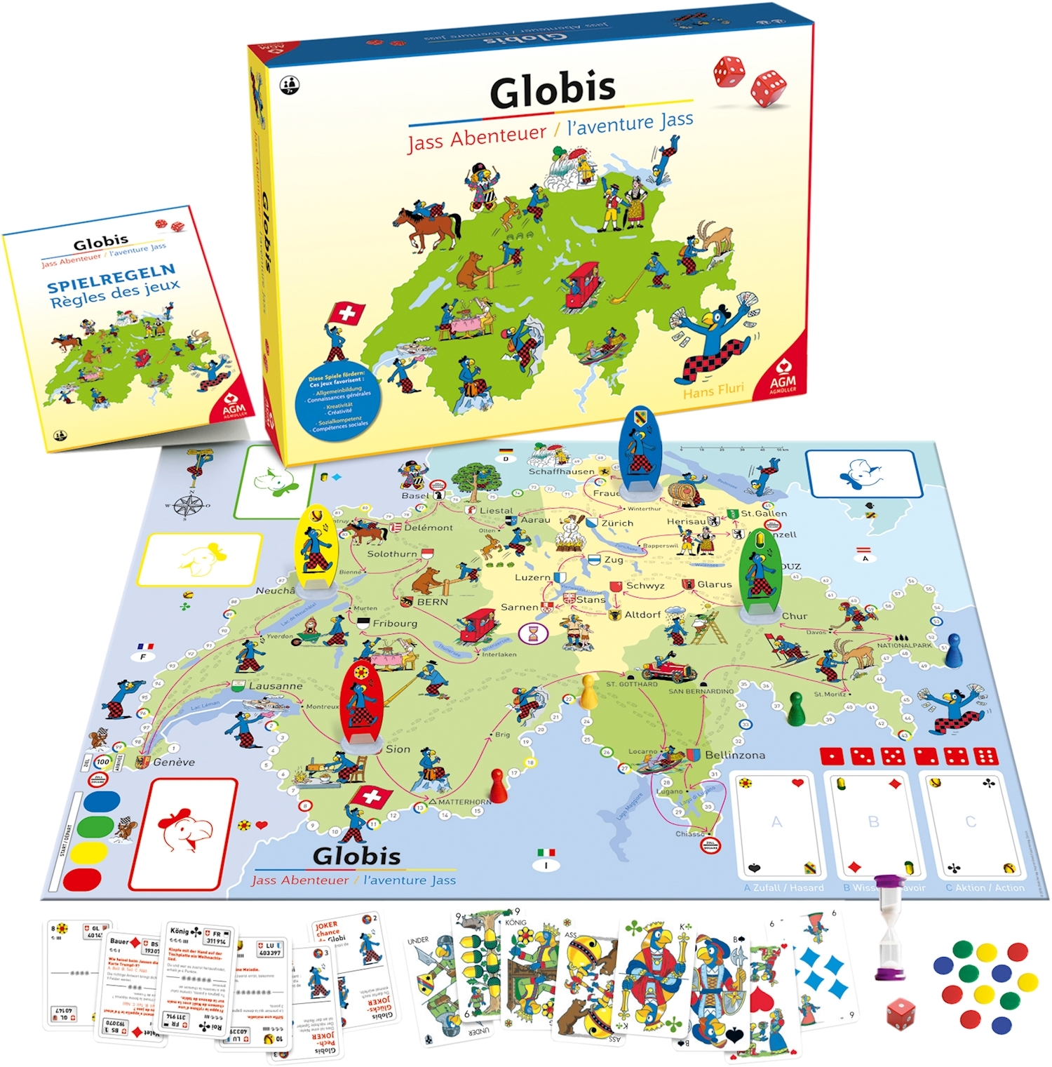 Mit Globi's Jass Abenteuer lernst du die Schweiz spielerisch kennen. Die Verknüpfung von Brett- und Kartenspiel, in Kombination mit Würfelglück, bilden die Basis zu diesem Spiel. Du musst nicht Jassen können um diese Abenteuer zu erleben. Inhalt Inhalt: Globi ...