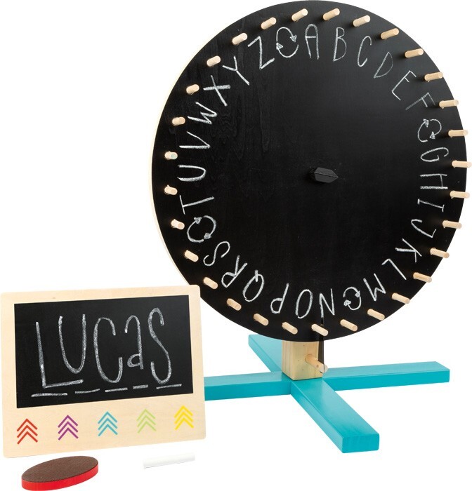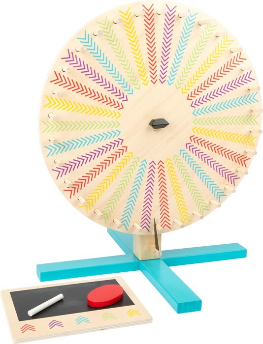 Jeder Dreh gewinnt! Dieses Glücksrad aus Holz kommt mit einer wendbaren Drehscheibe daher, die sich leicht umrüsten lässt. Die Scheibe ist auf der einen Seite mit 30 Farbfeldern, auf der anderen mit Tafellack versehen. So kann immer wieder eine eigene neue Ein...