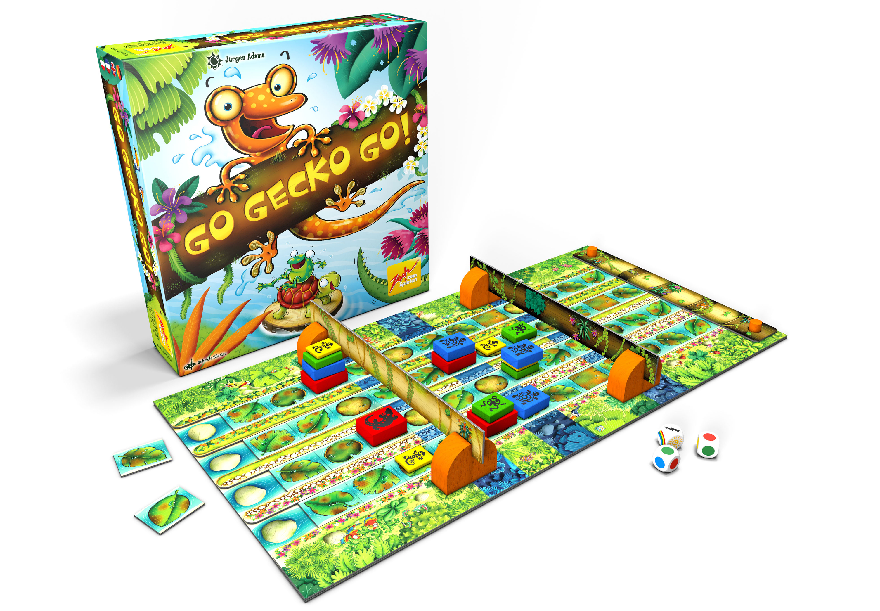 Wasser marsch zum großen Wettschwimmen! Drunter und drüber geht es, wenn sich große und kleine Tiere auf allerlei Treibgut in der Strömung tummeln. Jede Schwimmriege besteht aus einem großen Krokodil, einer Schildkröte, einem Frosch und einem kleinen Gecko. Wi...