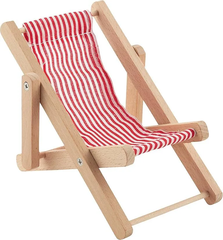 Damit auch Deine Puppe ihren Liegestuhl hat, mit rot-weiß gestreifter Liegefläche und stabilem Holzrahmen. Ein absolutes Muss für jede Puppenmutter.