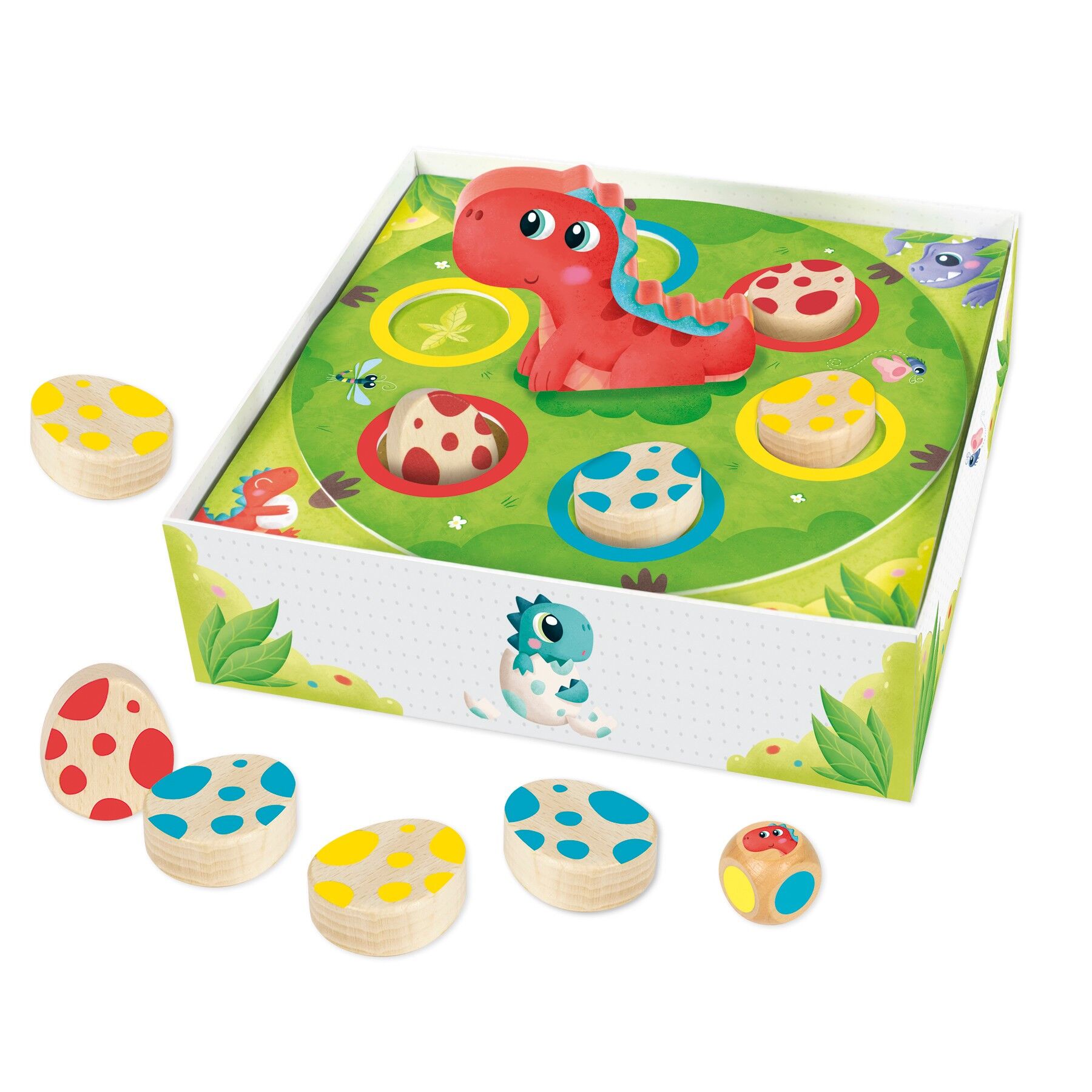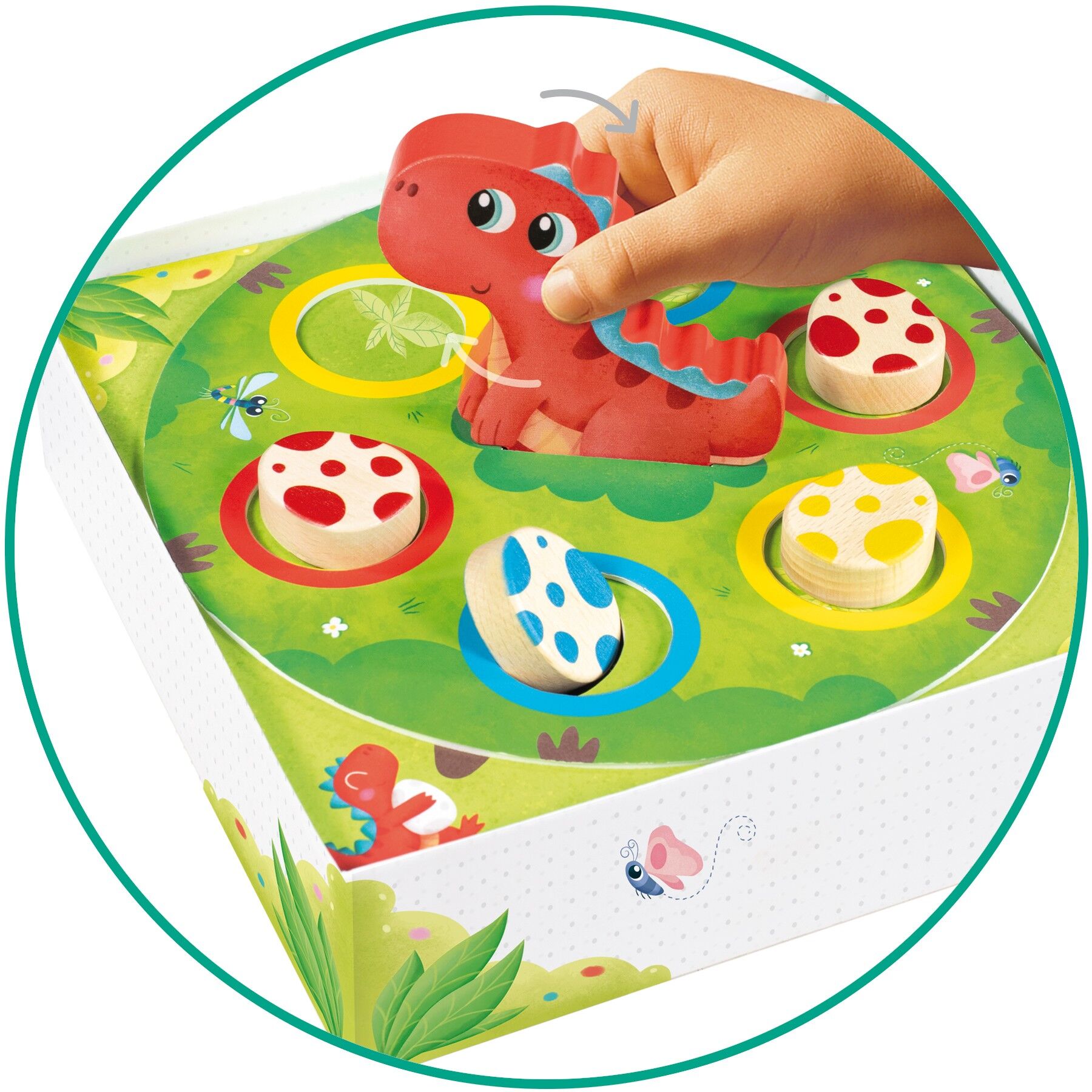 Bei diesem kooperativen und effektvollen Spiel müssen die Kinder Mama Dino helfen, ihre Eier zu finden! Das Ziel besteht darin, alle 9 Eier in ihr Nest zu bringen. Die Schachtel enthält einen drehbaren Einsatz, der für das Spiel verwendet wird. Spielmaterial: ...
