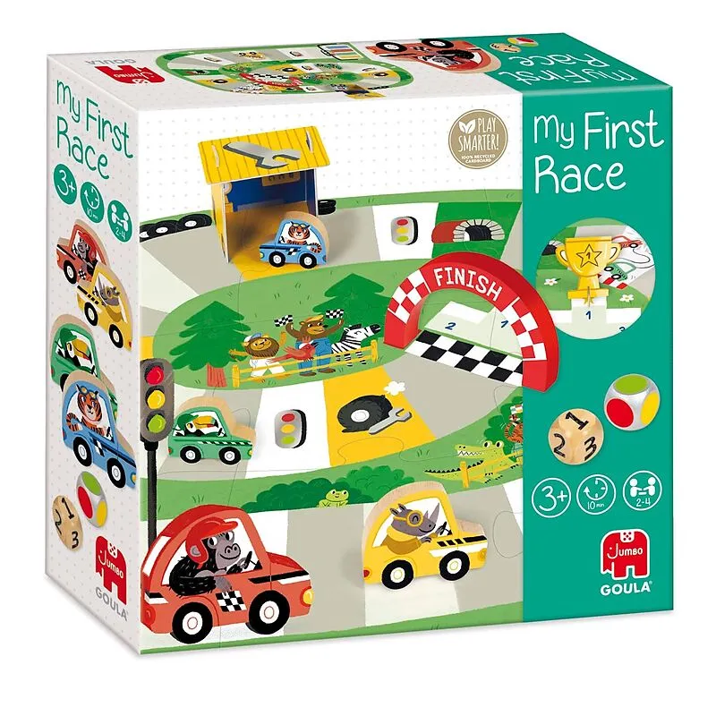Wer als erster die Ziellinie überquert und auf dem Podium steht, gewinnt den Pokal In dem Würfelspiel Mein erstes Autorennen lernen Kinder ab 3 Jahren die Farben und das Zählen. Wer schafft es, sein Holzauto auf der bunt gestalteten Rennstrecke voller Hinderni...