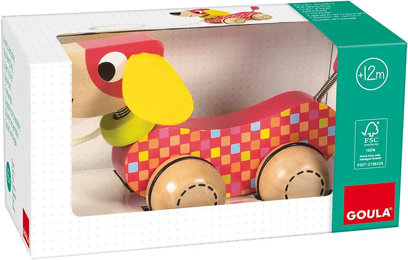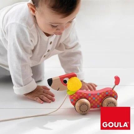 Ein netter Hund zum Ziehen, ist ein schöner Begleiter für das Kind. Durch Ziehen am Seil bewegt sich der Hund vorwärts und bewegt Kopf und Schwanz, was das Baby stimuliert. Er ist aus massivem Holz gefertigt und mit ungiftigen Farben bemalt. So kann ihr Kind s...