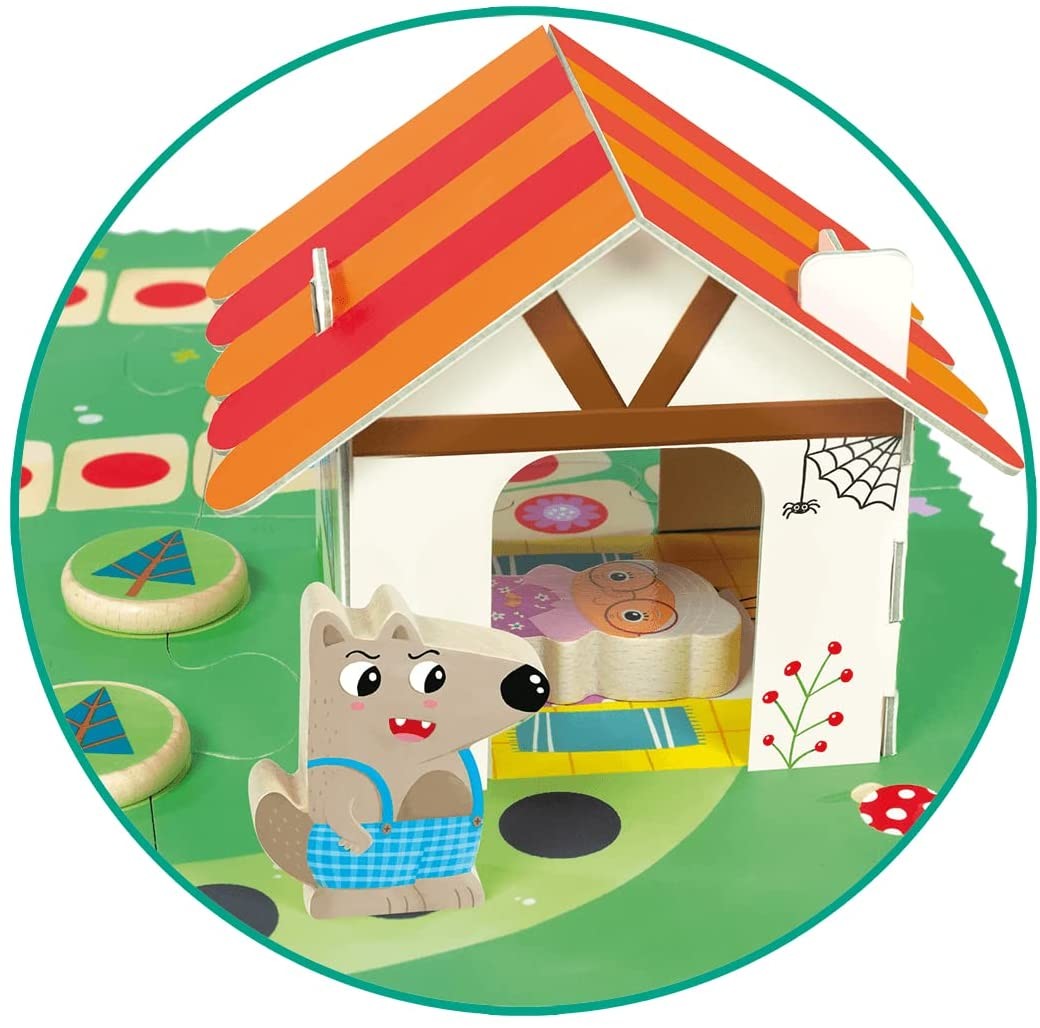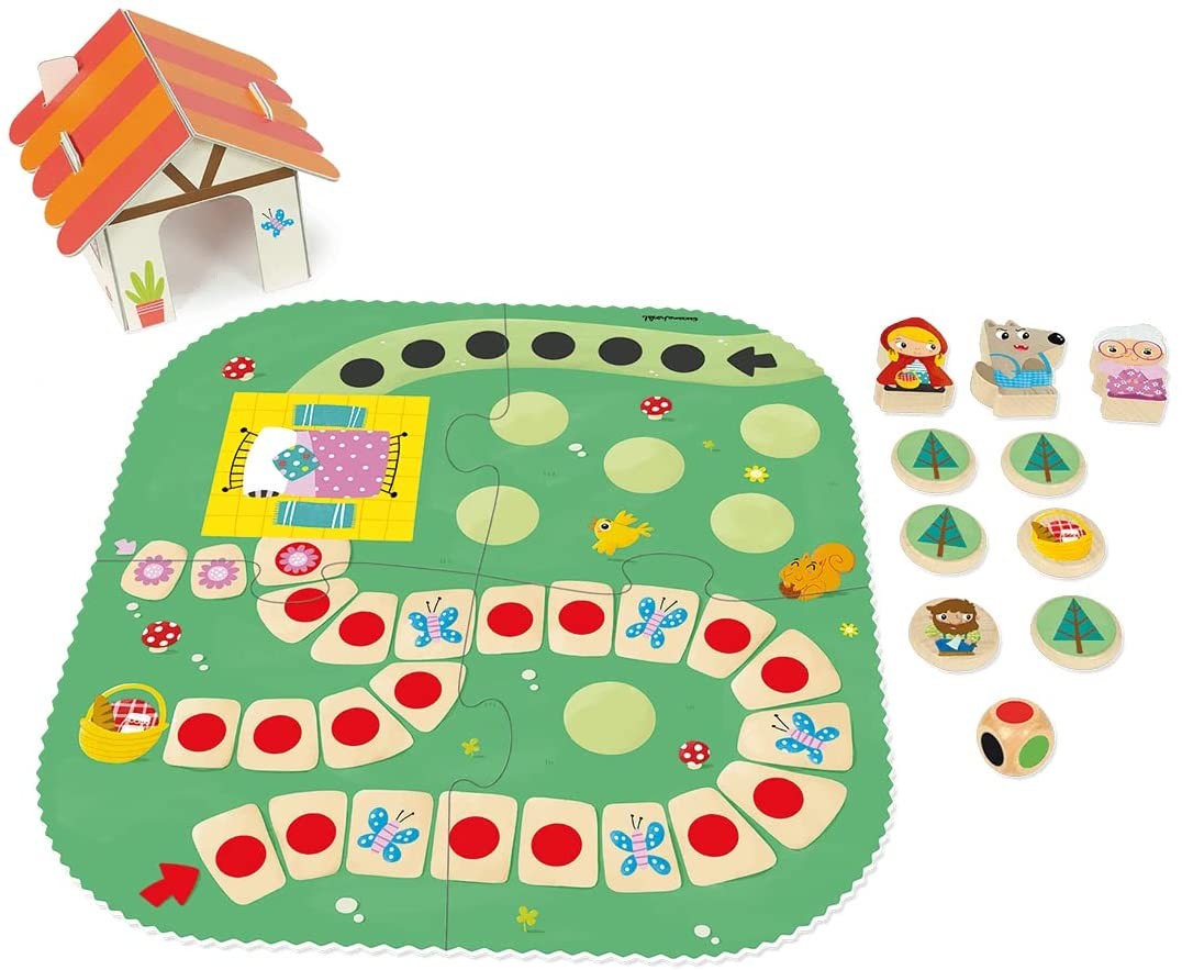 Kooperatives Spiel mit einfachen Regeln. Rotkäppchen muss schneller als der Wolf das Haus ihrer Großmutter erreichen. Inhalt: 10 große Holzteile, Puzzle-Spielbrett und 3D-Haus. Spieldauer: ca. 10 Minuten Kooperatives Spiel mit einfachen Regeln. Rotkäppchen mus...