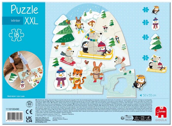 Puzzlemaße: 50 x 55 cm Dieses XXL-Puzzle mit Winterthema besteht aus 18 XXL-Puzzlestücken aus Karton und ist darauf ausgelegt, ein unterhaltsames und lehrreiches Spielerlebnis zu bieten. Darüber hinaus kommt das Puzzle mit einzelnen Teilen, die in Konfiguratio...