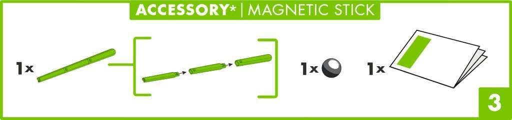 Durch die magnetische Spitze des Accessory Magnetic Stick werden die silbernen und bunten GraviTrax Kugeln wie von Zauberhand angezogen. Vor dem ersten Gebrauch kann er sehr leicht zusammengesteckt werden. Zusätzlich befindet sich in dem Set eine silberne Kuge...