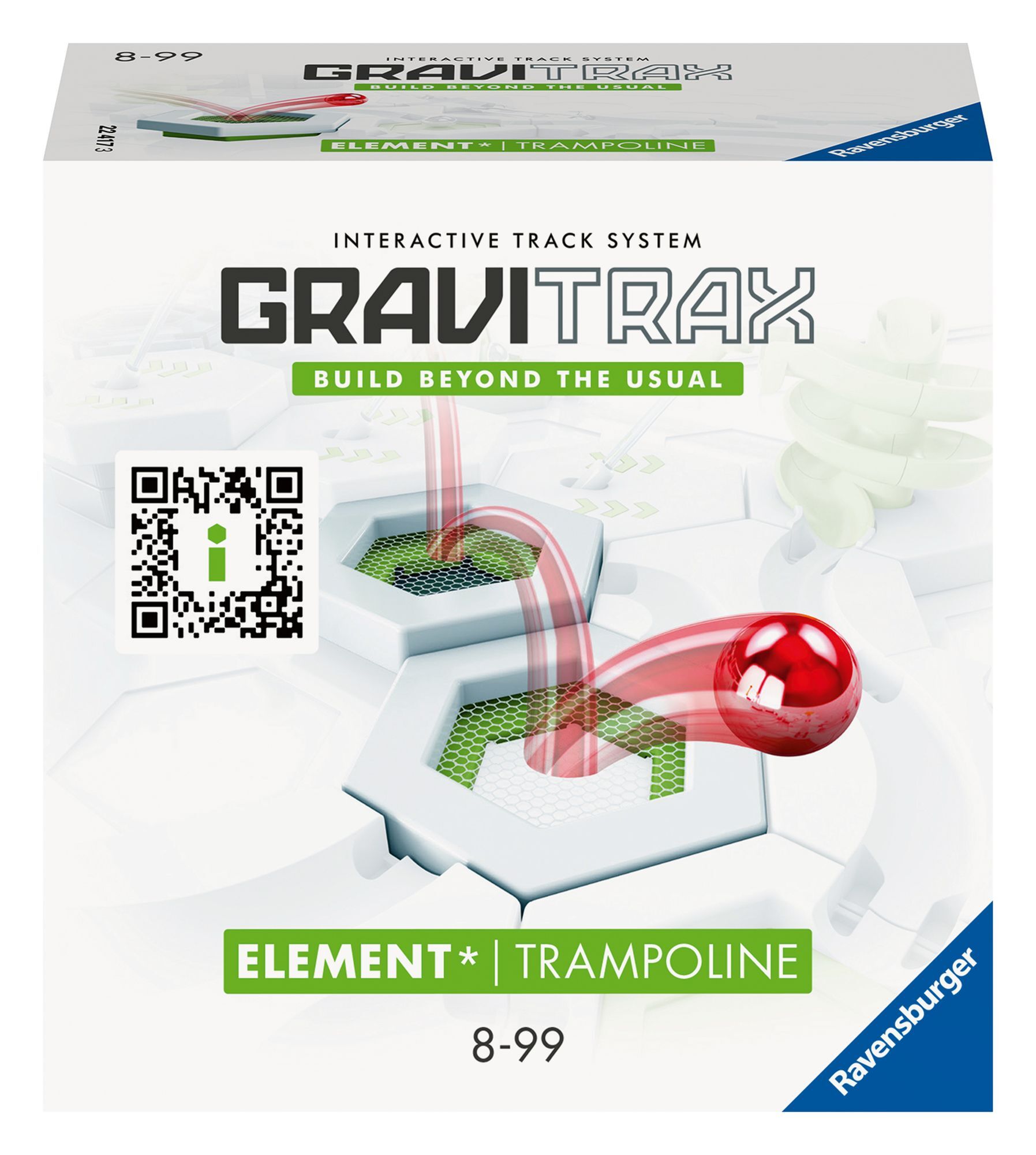 Mit dem GraviTrax Element Trampolin hüpft die Kugel über die gebaute GraviTrax-Bahn. So können Hindernisse und Höhenunterschiede in der Bahn imposant überwunden werden. Fällt eine Kugel auf das Trampolin, hüpft sie direkt auf eine höhere Ebene und trotzt so de...