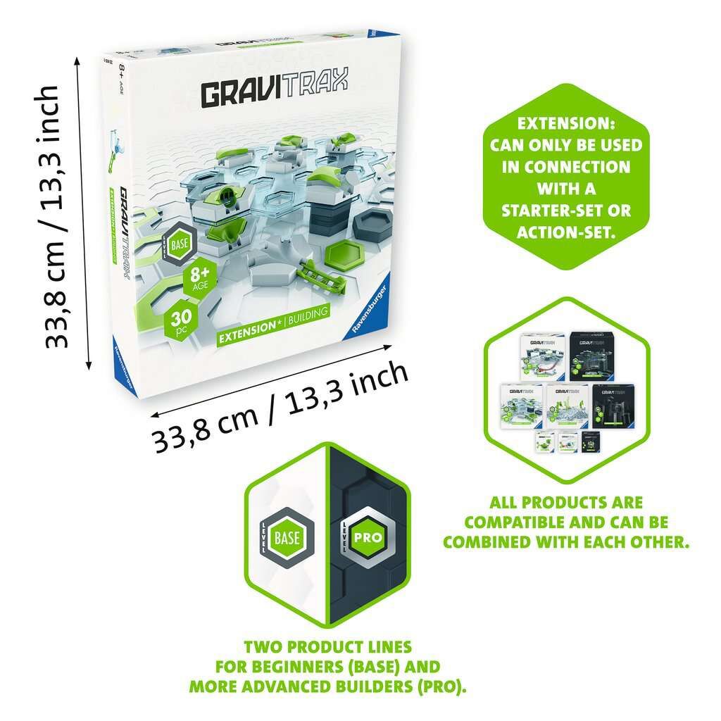 Die Extension Building beinhaltet viele verschiedene Basisbauteile zum Vergrößern der Kugelbahn. Kombiniert mit einem beliebigen GraviTrax Starter-Set bringt die Extension Building noch mehr Abwechslung und Kugelspaß in das GraviTrax-Universum. Wieviel länger ...