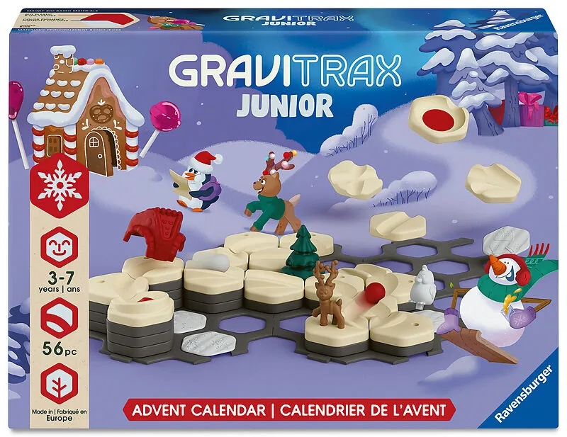 Ein Kugelbahn-Weihnachtsabenteuer wartet auf dich! Hilf dem Pinguin, den Weg nach Hause zu finden, indem du 24 Türchen voller Kugelbahn-Spaß öffnest.Mit dem GraviTrax Junior Adventskalender können Kinder ab 3 Jahren eine liebevoll gestaltete Weihnachtswelt ent...