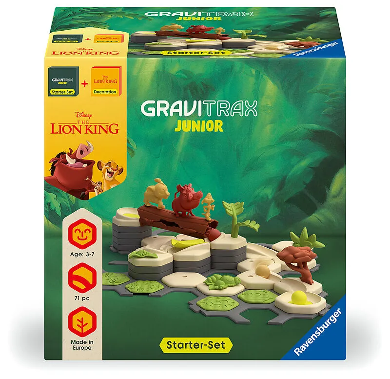 Ravensburger GraviTrax Junior Starter-Set Disney Lion King 73437 - Murmelbahn für Kinder ab 3 Jahren, mit Spielfiguren Mit dem GraviTrax Junior Starter-Set Disney Lion King tauchen Kinder ab 3 Jahren hautnah in die König der Löwen-Welt einBau- und Spielspaß fü...