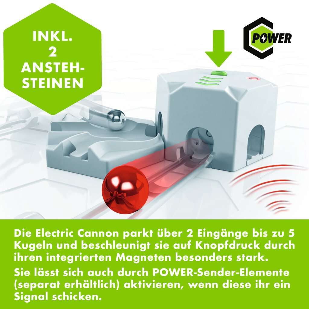 Ein Track, unzählige Möglichkeiten! Mit den elektronischen GraviTrax POWER Elementen kontrolliert der Spieler den Lauf der Kugeln. Über den Controller können per Knopfdruck die POWER Elemente Weiche, Starter oder Lever aktiviert werden. (Nicht im Produkt entha...