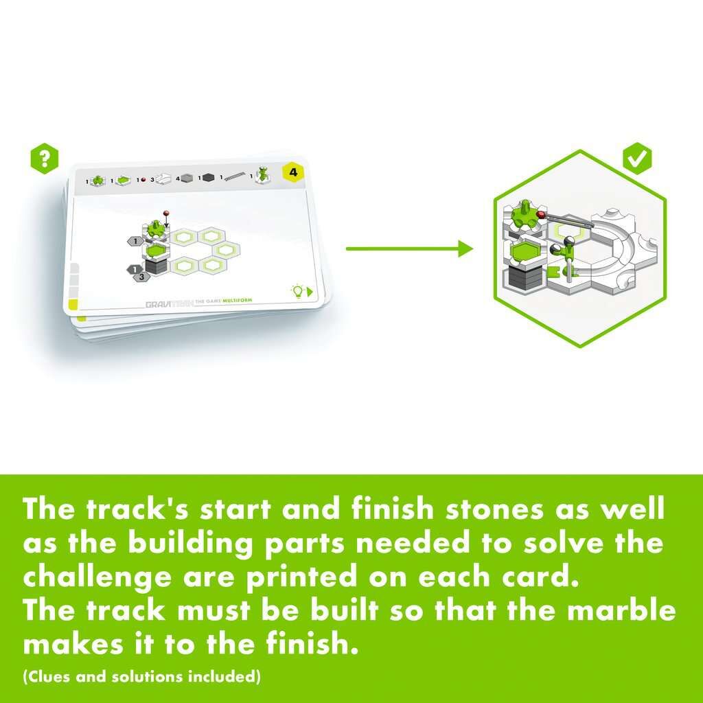 The Game besteht aus 30 Rätseln, die mithilfe von Aufgabenkarten gelöst werden. Zu Beginn wird die Position vom Startstein und Ziel angegeben. Wie muss die Bahn gebaut werden, dass die Kugel vom Start bis ins Ziel rollt Es wird vorgegeben, welche Elemente verw...