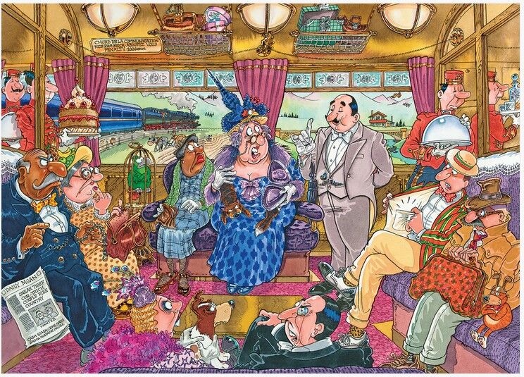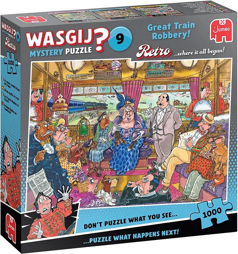 Puzzlemaße: 68 x 49 cm Inhalt: 1x Puzzle, 1x Lösungshinweis Die Fahrgäste sind beraubt worden! Aber wer könnte es gewesen sein und wo ist die Beute versteckt? Der Detektiv muss schnell kombinieren, wenn er die Diebe aufhalten will! Das ist die Perspektive, die...