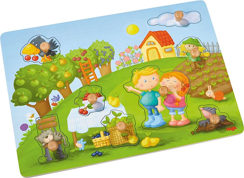 Das liebevoll gestaltete Greifpuzzle Obstgarten von HABA ist bietet schon für Puzzle-Anfänger ab 12 Monaten eine abwechslungsreiche Puzzle- und Spielwelt - 8 Puzzleteile mit großen, griffigen Knöpfen aus hellem Sperrholz - fördert die Feinmotorik, die Konzentr...