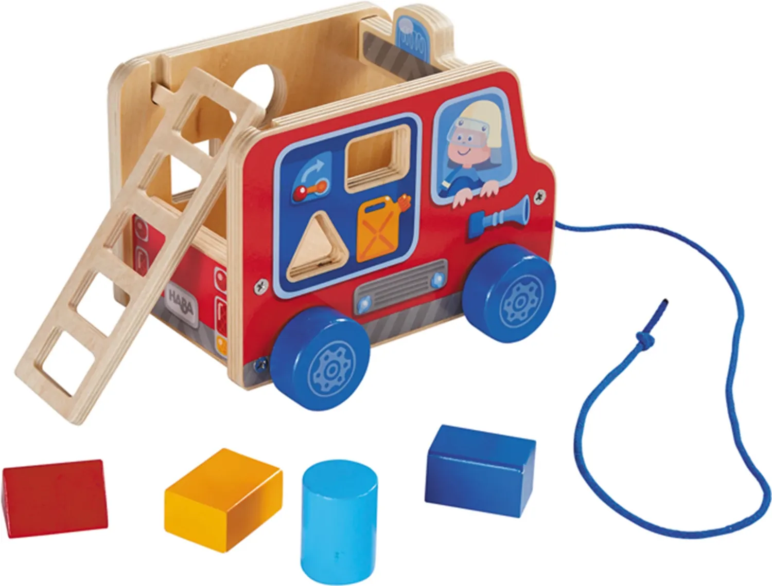 Die vielseitige Ziehfigur Feuerwehrauto von HABA ist gleichzeitig ein spannendes Steckspiel für Kleinkinder ab 12 Monaten. Sortier- und Steckspielzeug mit vier bunten Bausteinen in verschiedenen Formen zum Erkunden. Niedliche Feuerwehrmann-Motiv auf dem Holzau...