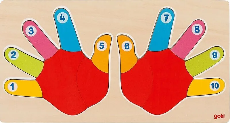Zähle von eins bis zehn mit Hilfe der Finger. Extra klare Farben und Zahlen unterstützen dabei.