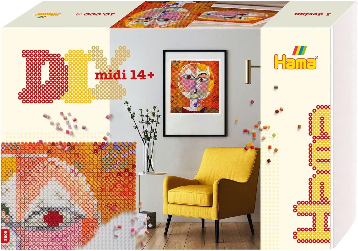 Inhalt: Ca. 10.000 bunte Midi Bügelperlen, 6 große viereckige Stiftplatten Nr. 234, Motiv-Vorlage: Paul Klee, Anleitung und Bügelpapier. Enthält Perlen der Größe Midi mit 5 mm Durchmesser, diese sind empfohlen für Kinder ab 14 Jahren. Das Basteln mit Steckperl...
