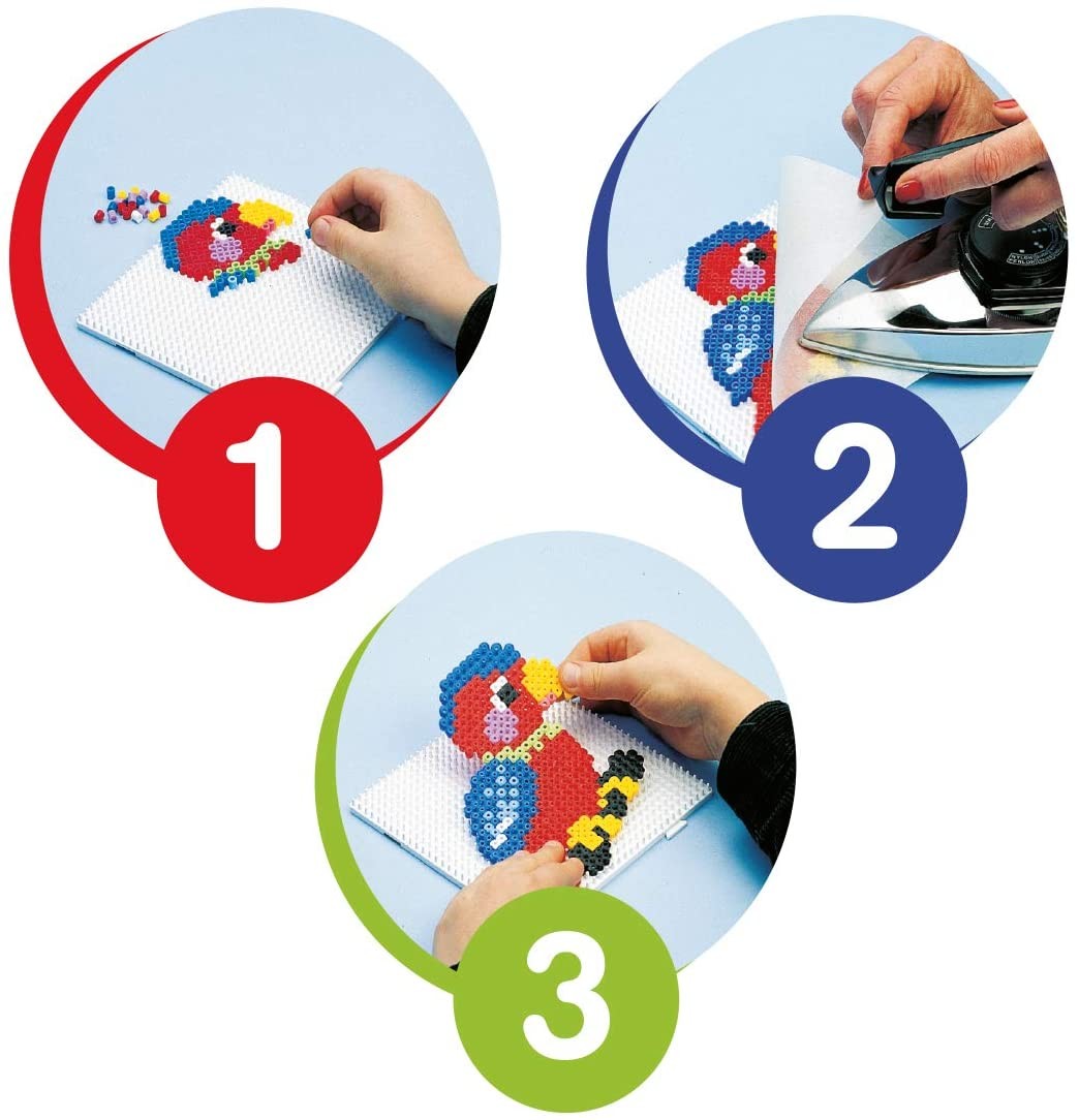 Die Blister Packung "Kreisel" enthält ca. 600 Bügelperlen, die Stiftplatte kleiner Kreis und Bügelpapier. Die vier beigefügten HAMA-Verbinder können als Kreiselstift verwendet werden. HAMA Perlenstecken, viele Stunden Spaß und lehrreiches Spiel. Die Bügelperle...