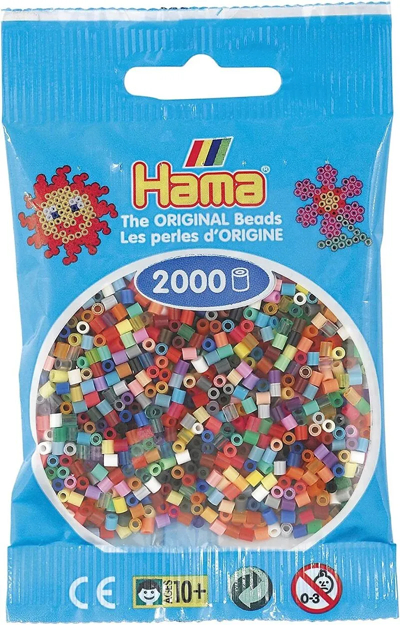 Ca. 2.000 Mini Perlen - Mix 00 - Farben Nr. 01..22, 24, 26..32, 34..38, 43..49, 60, 70, 71, 75..79, 82..84, 95..98, 101..107 Die Hama Mini-Perlen mit einem Durchmesser von nur 2,5 mm sind unsere kleinsten Perlen und für Kinder ab 10 Jahren geeignet. Auch viele...