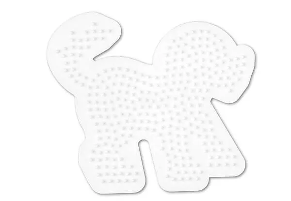 Stiftplatte von Hama für das Stecken von Bügelperlen mit Hunde-Motiv. Die Legeplatte kann nach dem Bügelnwieder verwendet werden. Maße: 13 x 11 cm.