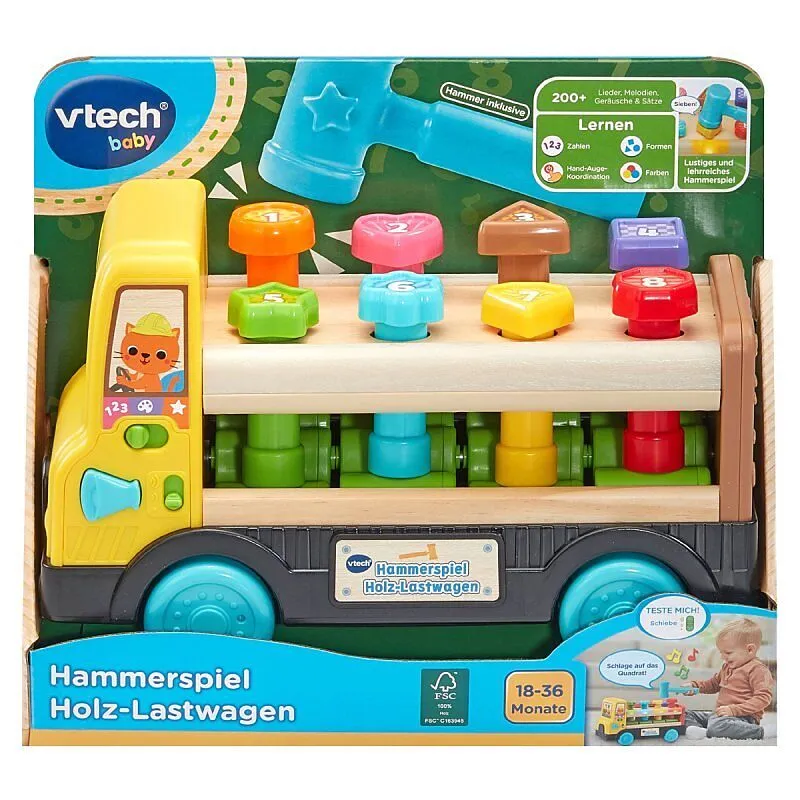 Hammerspiel Holz-Lastwagen 3 Spielmodi: Zahlen bis 8 lernen, Farben lernen, Formen lernen Draufhauen mit dem interaktiven und leuchtenden Lastwagen! 8 unterschiedliche Formstecker mit unterschiedlichen Zahlen und Farben Das Holz für dieses Produkt stammt zu 10...