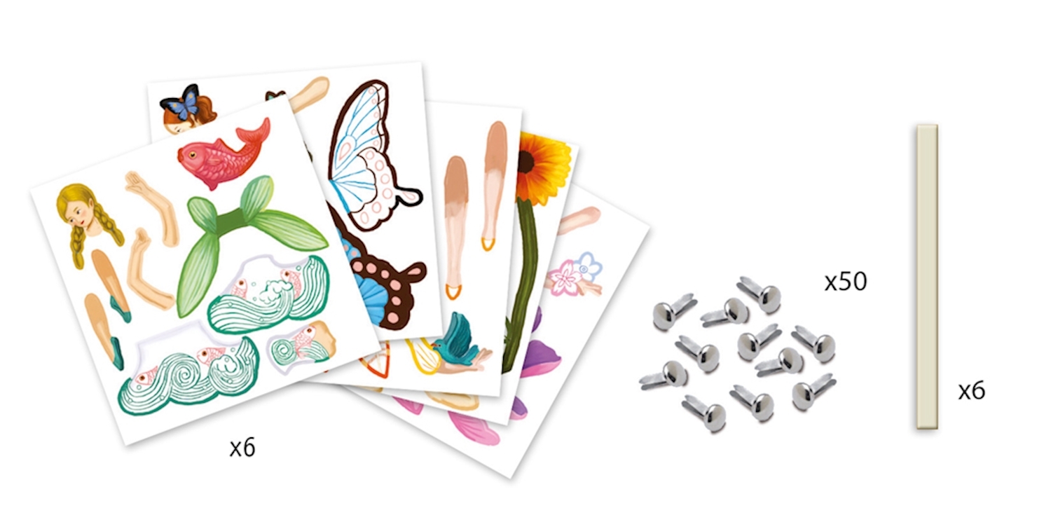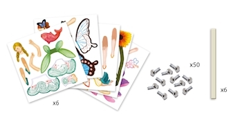 Alter: ab 6 Jahre 22 x 23 cm Drei Feenfiguren, die in Einzelteile zerlegt sind. Zuerst können die Feen nach belieben bemalt werden und danach mit den im Set enthaltenen Metallverbindern zu einer Hampelfee zusammengebaut werden. Inhalt: 6 x Hampelmänner, 50 x M...