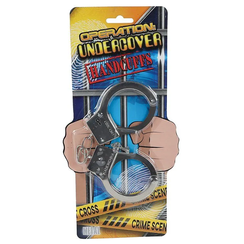 Handschellen Metall auf Karte. Ab 6 Jahren.