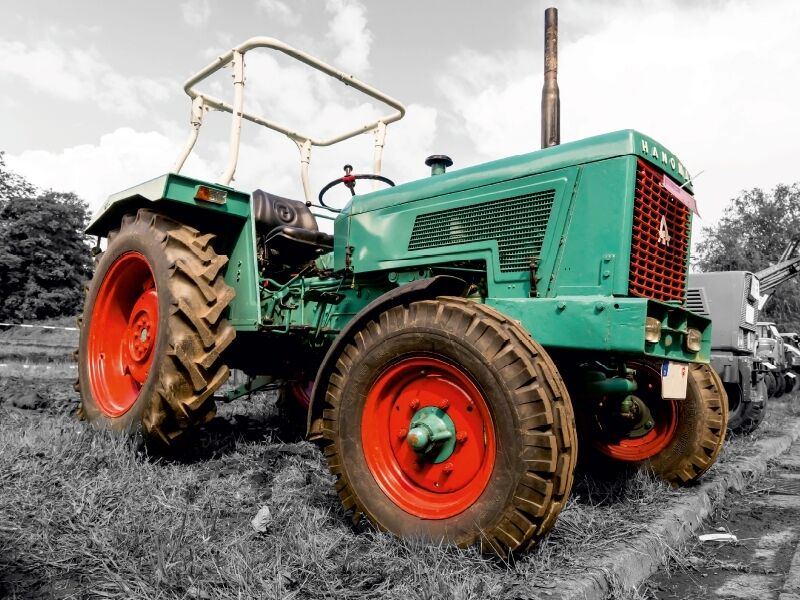 Diese Oldtimer-Traktoren wurden von der Autorin Andrea Dreegmeyer durch die Technik der Coloration vom schwarz-weißen Hintergrund hervorgehoben. Alte Trecker werden oft libevoll restauriert und auf den Trecker-Treffen dann von Ihren Besitzern hochglanzpoliert ...