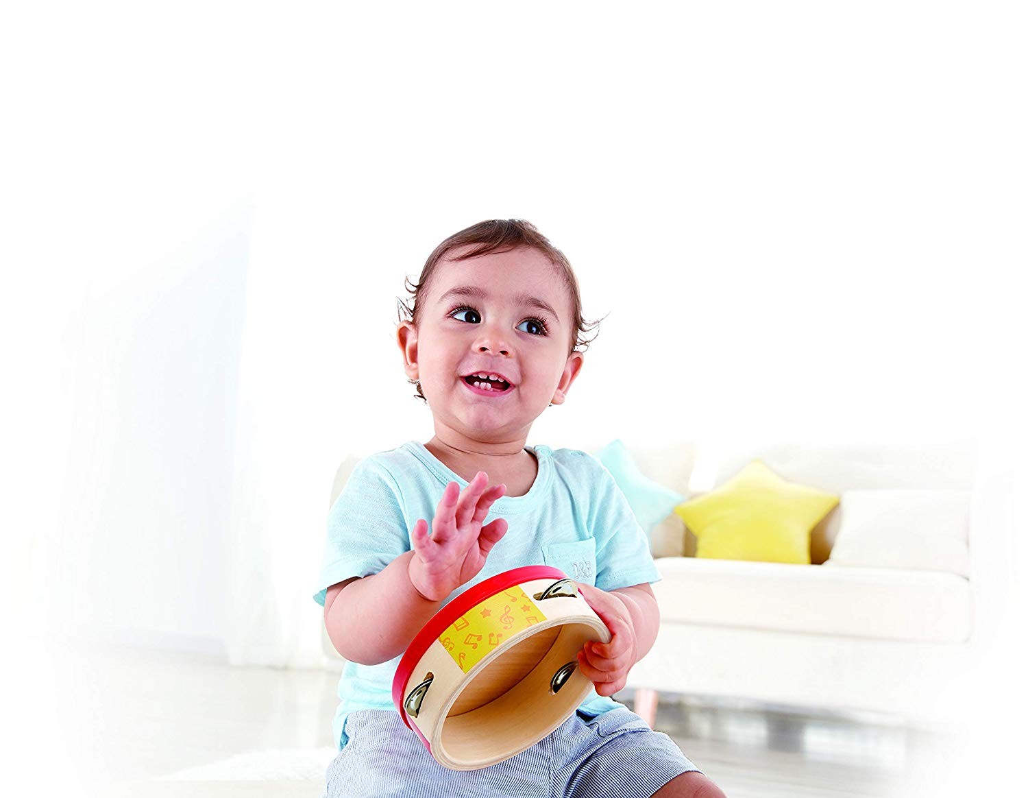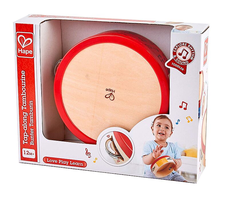 Holztamburin mit farbigen Metallteilen - Robuste hölzerne Spielfläche reduziert die Schallabstrahlung - Attraktive Farbgestaltung mit Musiknotengrafik - Kann einzeln oder zusammen mit anderen Instrumenten gespielt werden - Mäßiger Schallpegel, der für empfin...