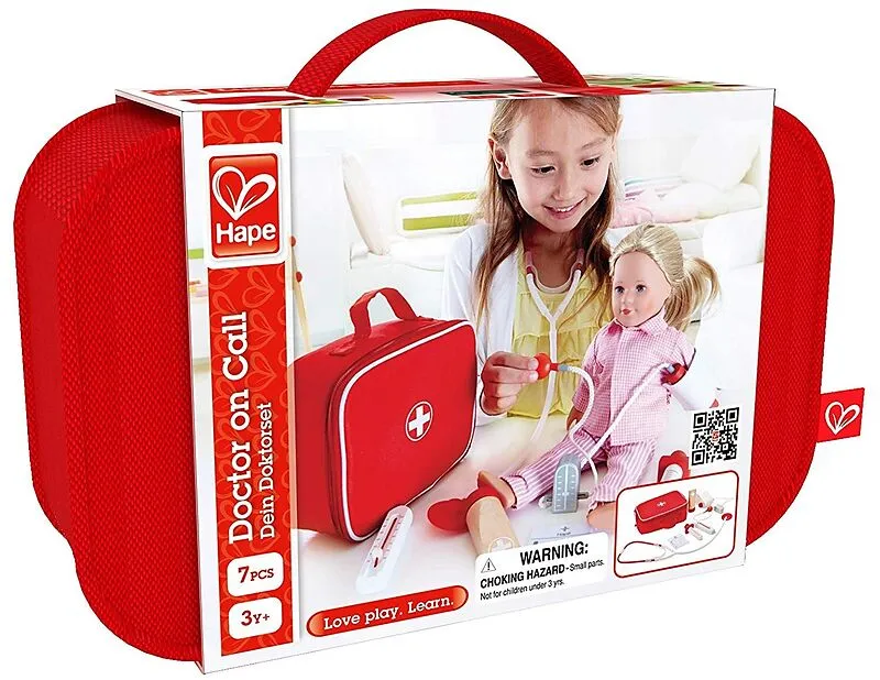 Mit dem Doktorset können Kinder ab 3 Jahre Situationen beim Kinderarzt nachspielen und sich so in die kleinen Patienten einfühlen. Das Set besteht aus sieben Teilen, viele darunter sind aus Holz. Stethoskop, Fieberthermometer, eine kleine Spritze und andere me...