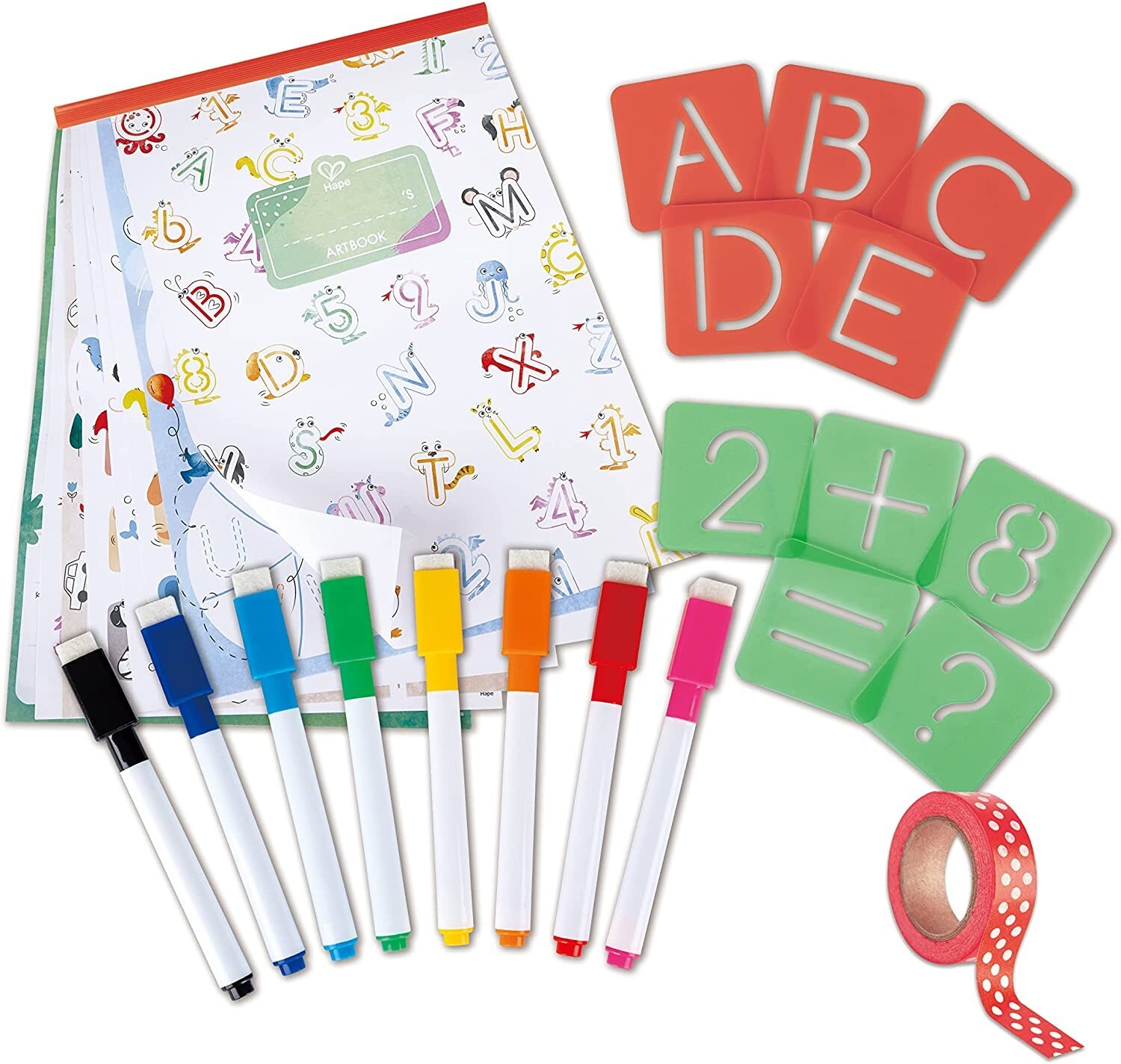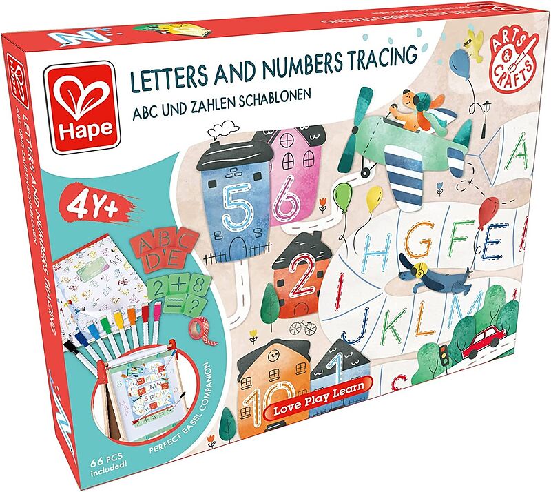 Hape E1070 - Letters and Numbers Tracing, ABC und Zahlen Schablonen, 66-teilig, Malset, Love Play Learn