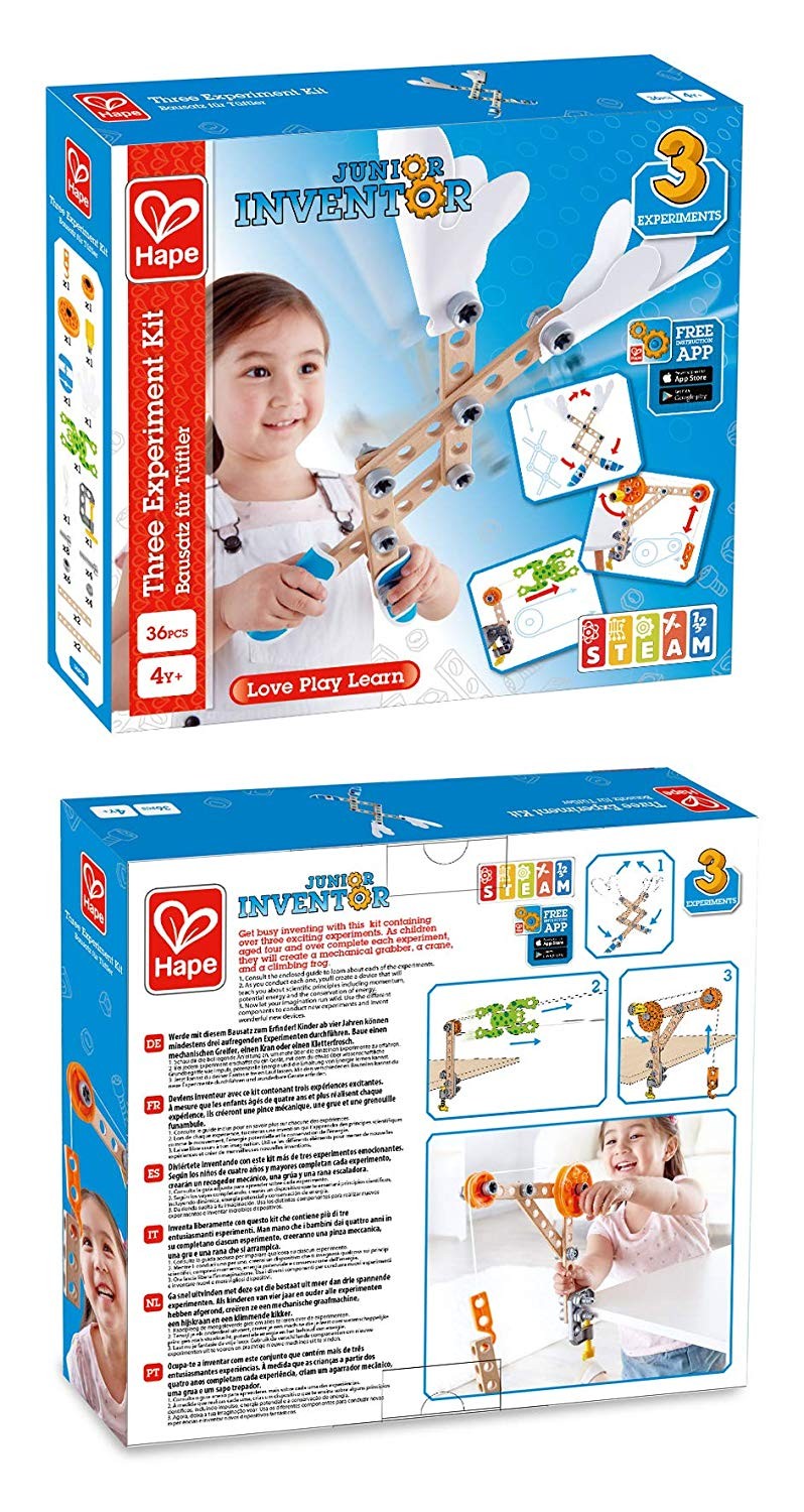 Werde mit diesem Bausatz zum Erfinder! Kinder ab vier Jahren können mindestens drei aufregenden Experimenten durchführen. Baue einen mechanischen Greifer, einen Kran oder einen Kletterfrosch.
