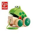 Will er Fliegen fangen oder mit seinen Freunden singen? Fridolins Mund öffnet und schließt sich, wenn man ihn zieht. Wenn Fridolin nach vorne gezogen wird, ermuntert er Kinder zum Krabbeln. Außerdem ist er ein treuer Begleiter auf den ersten Schritten.