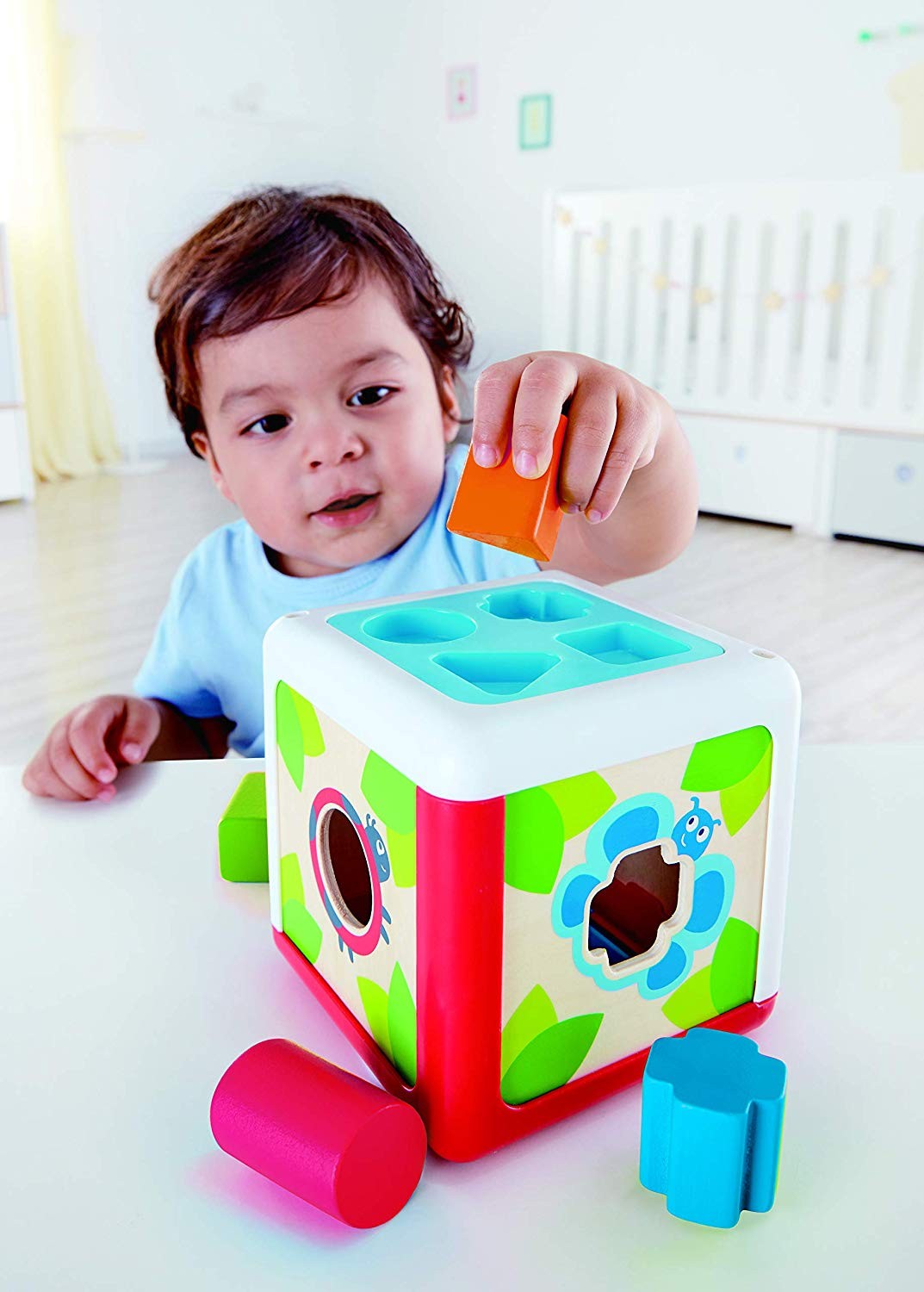 Mit der Regenbogen-Klopfbank können kleine Baumeister Hämmern wie die Großen. Die Klopfbank aus Holz verfügt über Pflöcke in Regenbogenfarben, die sich ganz einfach durch die Löcher schlagen lassen.