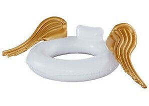 Schwimmring "Engelsflügel" in weiß mit goldenen Flügeln und Nackenstütze.Maße: ca. 109x109x57cm