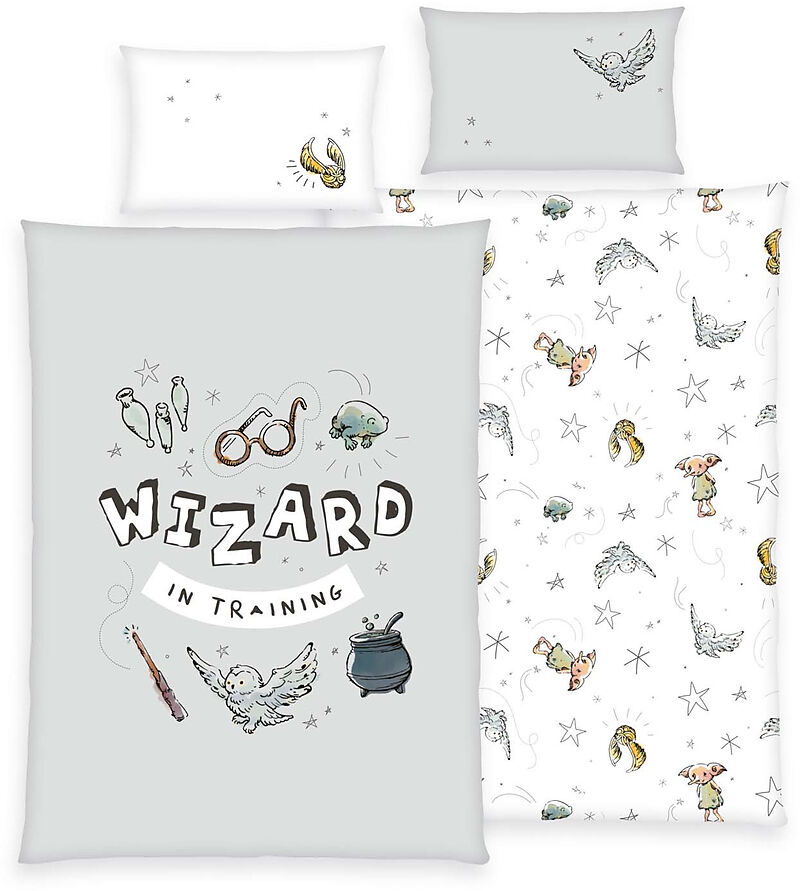 Entführe dein kleines Zaubererkind in die magische Welt von Harry Potter mit unserer Harry Potter Kleinkindbettwäsche Wizard in training aus 100% Baumwolle. In der Größe 4060/100135 cm bietet sie nicht nur höchsten Komfort, sondern auch ein faszinierendes Desi...