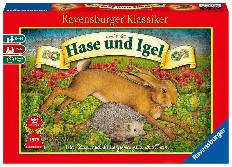 In diesem Ravensburger Klassiker Hase und Igel nähern sich die 2-6 Spieler durch überlegtes vorwärts und rückwärts Bewegen langsam, aber sicher der Ziellinie. Nur wer mit seinem Karotten- und Salatvorrat am geschicktesten umgeht, kann gewinnen. Mit reichlich K...