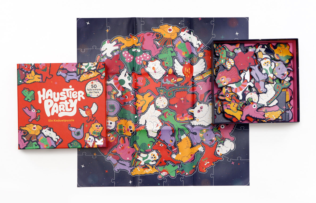 -Ein weiteres Highlight unserer erfolgreichen Knäuelpuzzles -Jedes Puzzleteil hat die Form eines Haustiers-Liebevoll und witzig gezeichnetHier geht die Post ab! 50 Haustiere feiern eine Party und jedes Puzzleteil hat die Form des jeweiligen Tieres. Ein Rahmen ...