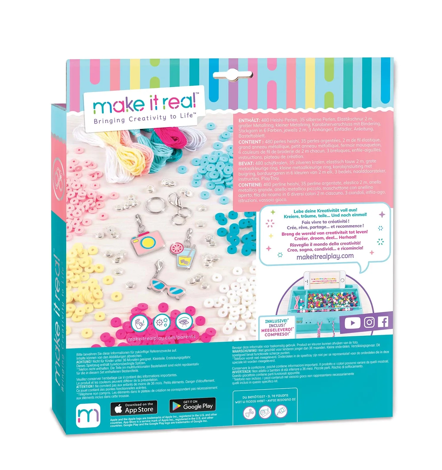 Make It Real - Heishi-Perlenarmbänder Set zum Herstellen von trendigen Armbändern. Inhalt: 480 Heishi-Perlen, 35 silberne Perlen, 1 Elastikschnur (2 m), 1 großer Metallring, 1 kleiner Metallring, 1 Karabinerverschluss mit Bindering, Stickgarn in 6 verschiedene...
