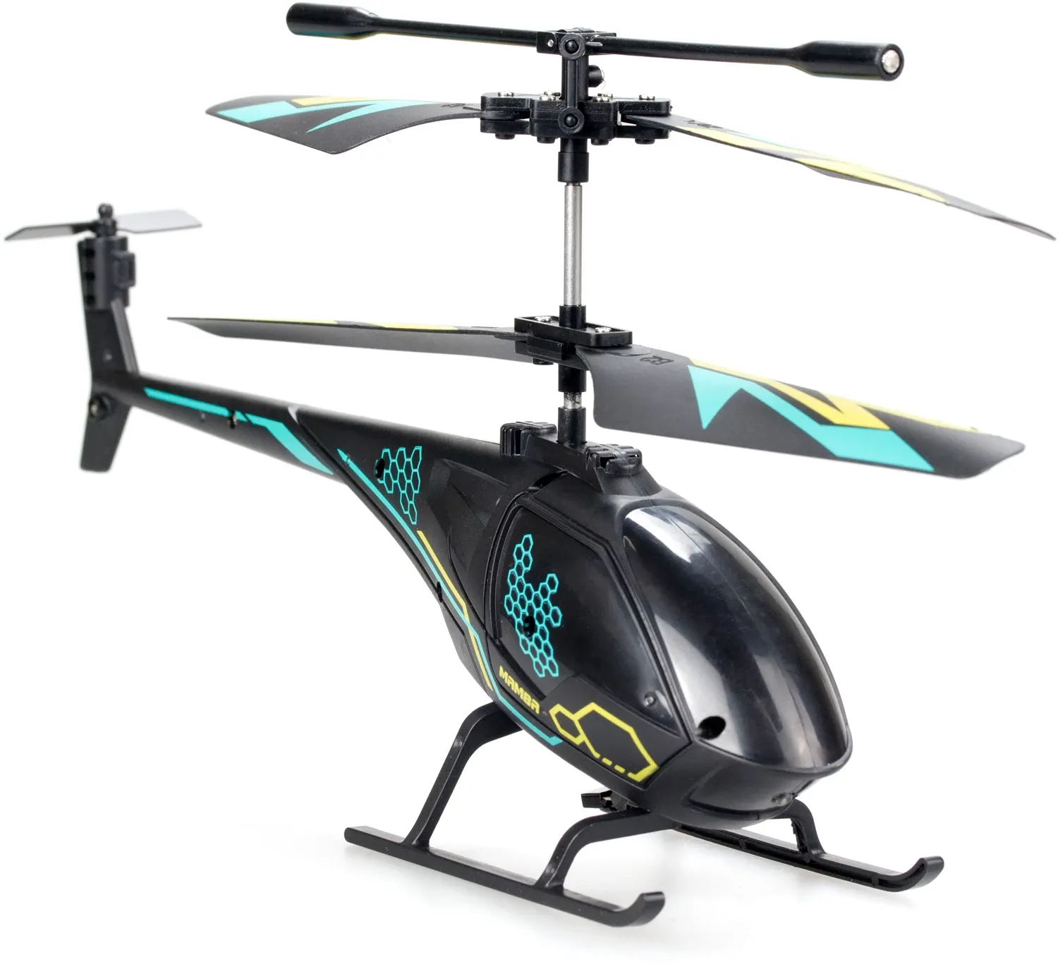 Grösse des Helikopters 22,5x12,3x12 cm. 2-Kanal-Hubschrauber für den Innenbereich mit Infrarotsteuerung und LED-Beleuchtung. Digitale Proportionaltechnik sorgt für präzises Handling (auf und ab, links und rechts). Reichweite 25 m.