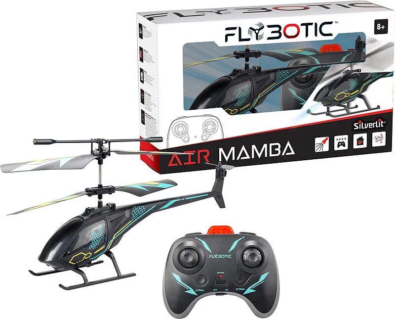 Grösse des Helikopters 22,5x12,3x12 cm. 2-Kanal-Hubschrauber für den Innenbereich mit Infrarotsteuerung und LED-Beleuchtung. Digitale Proportionaltechnik sorgt für präzises Handling (auf und ab, links und rechts). Reichweite 25 m.