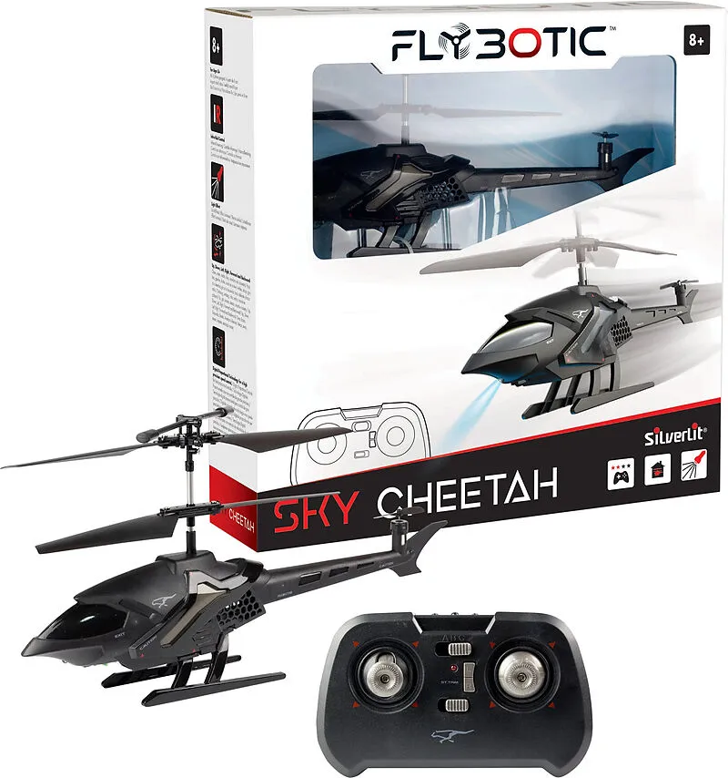 223x82x109 mm. Der Sky Cheetah Helikopter verfügt über ein Koaxialsystem. Indoor, 3-Kanal-Kontrolle, IR, Reichweite bis zu 8 m, Ladezeit ca. 45 Minuten, Spielzeit ca. 4 Minuten.
