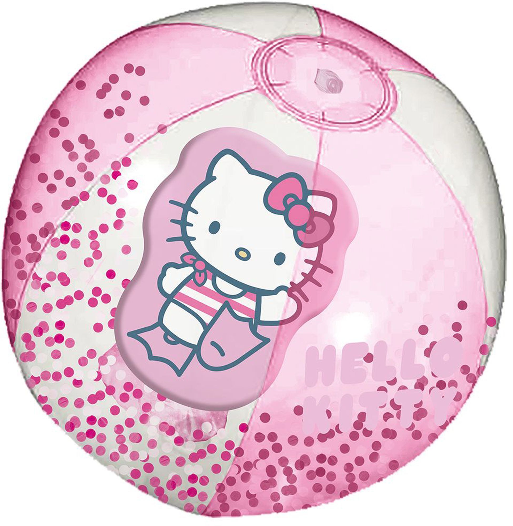 Hello Kitty Strandball mit 3D Motivfigur, aufgebl. ca. 29cm, unaufgebl. ca. 40 cm, transparente Panele teilweise rosa, mit pinkem Glitzer