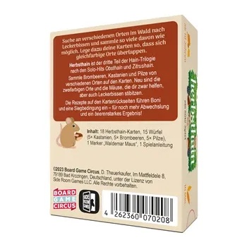 In diesem raschen Solo-Puzzle geht es darum, durch geschicktes Anordnen deiner Handkarten so viele Leckerbissen wie möglich zu sammeln. Platziere deine Karten so, dass die Orte des Waldes die gleichen Orte in deinem Herbsthain überdecken. Je raffinierter du di...