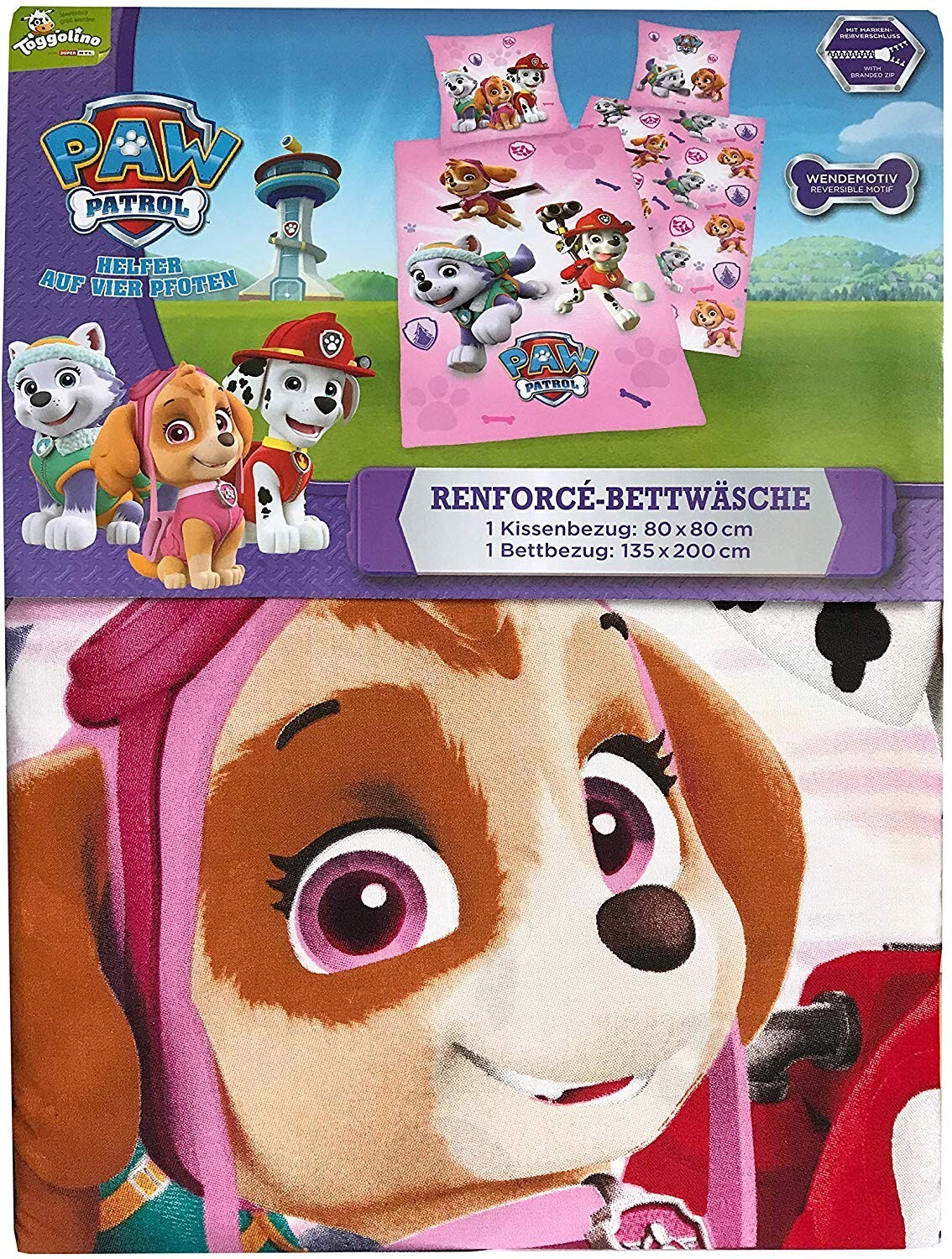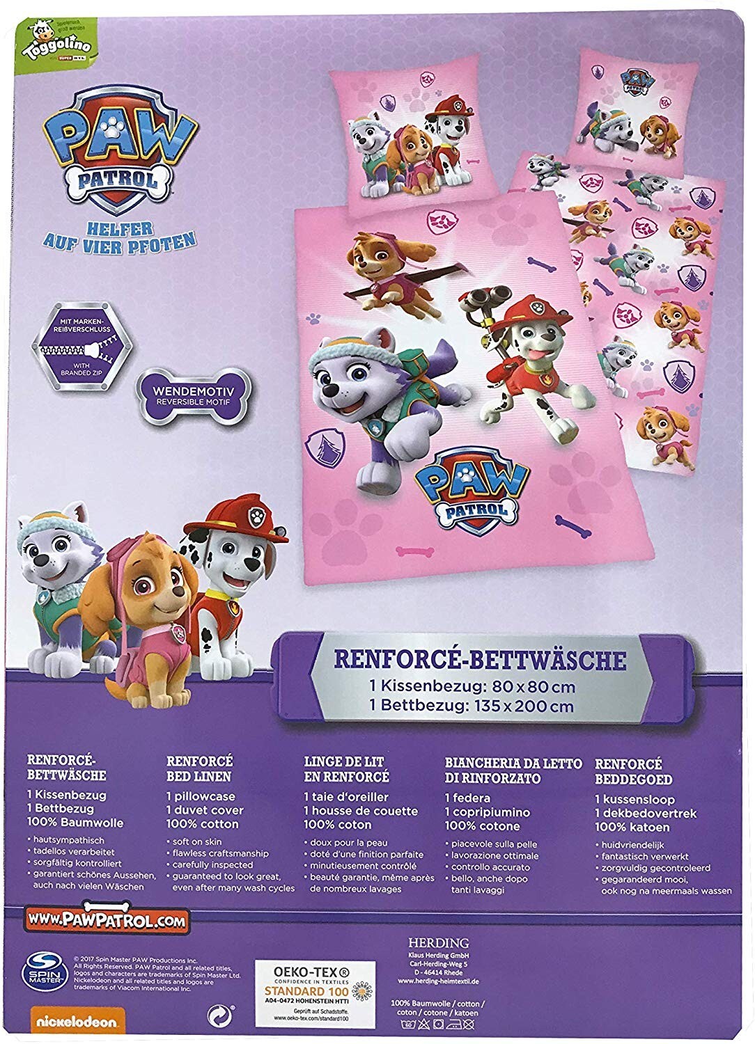 Die ideale Geschenkidee für jeden Anlass: Bettwäsche mit verspieltem Paw Patrol Wendemotiv für tapfere Abenteurer. Lizenziertes 2-teiliges Set: Abwechslungsreiches Design dank Wende-Kopfkissenbezug mit detailreichen Motiven und Wende-Bettbezug mit Flach- und R...