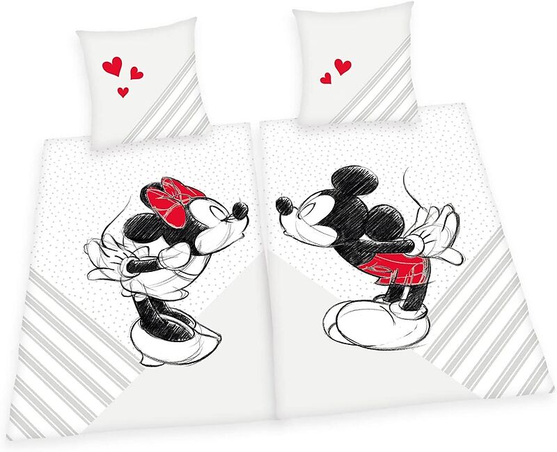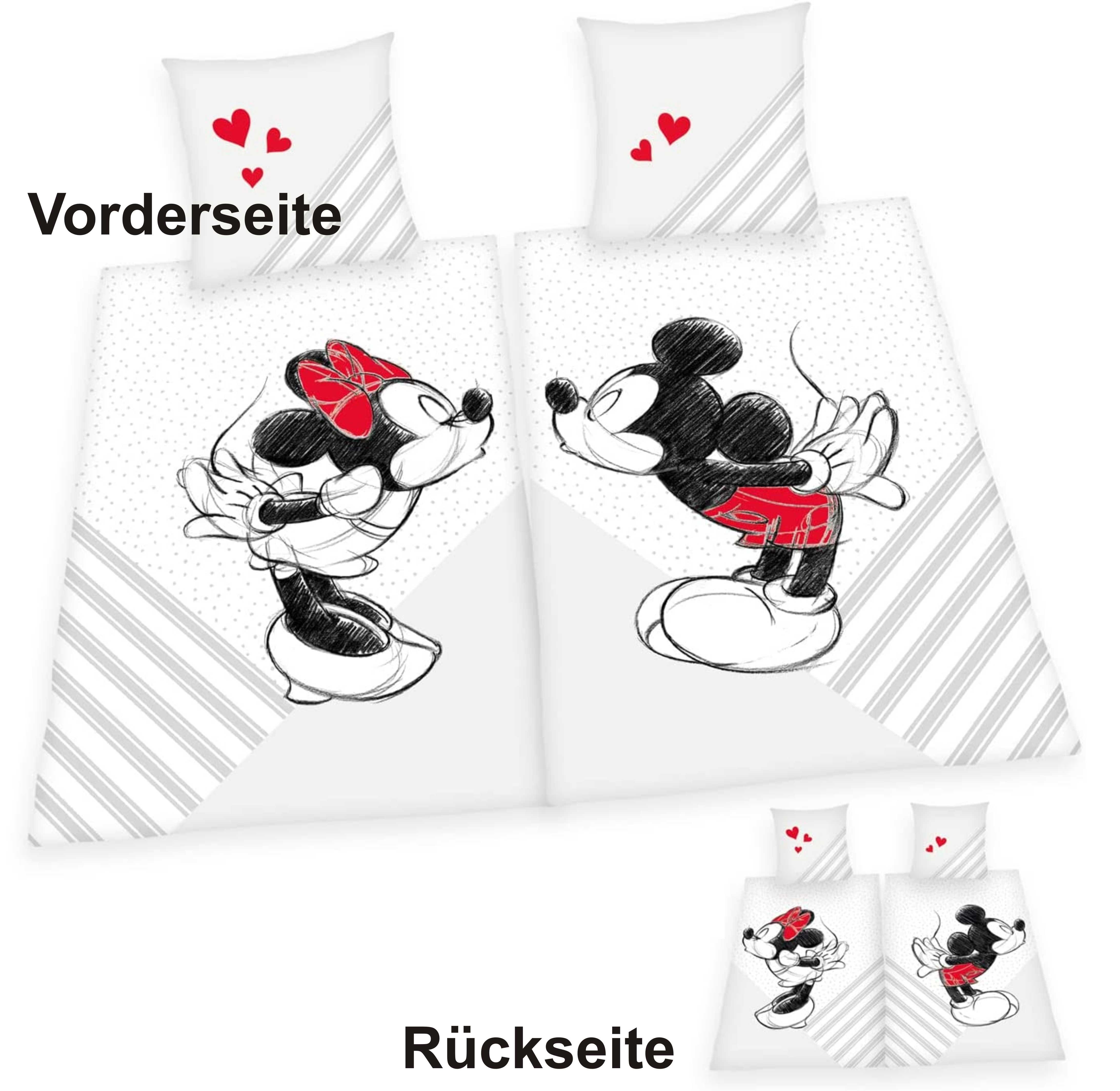 Herding 4478480250 - Disney Mickey & Minnie Mouse Partnerbettwäsche, Bettwäsche-Set, 2x80x80cm und 2x135x200cm