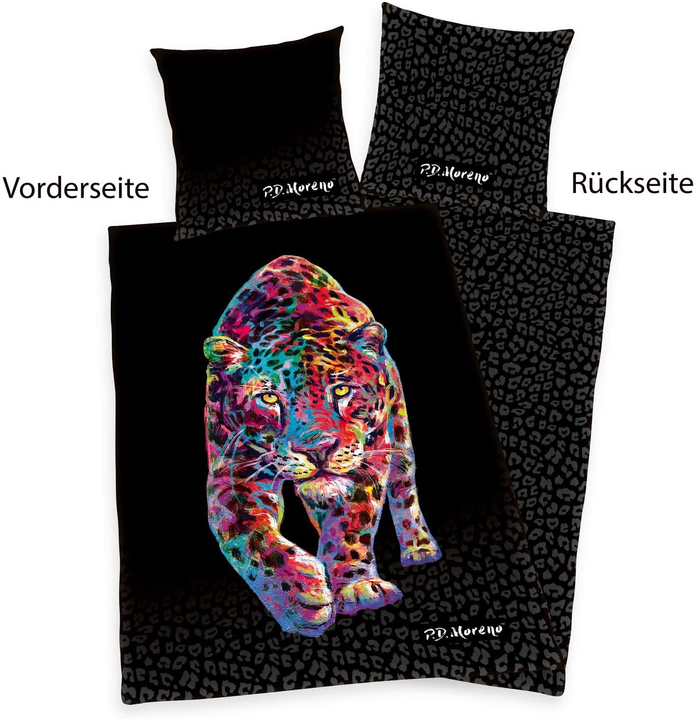 Herding 4707408050 - P.D. Moreno "Leopard" Bettwäsche-Set, Cotton, schwarz, 80 x 80 cm, 135 x 200 cm