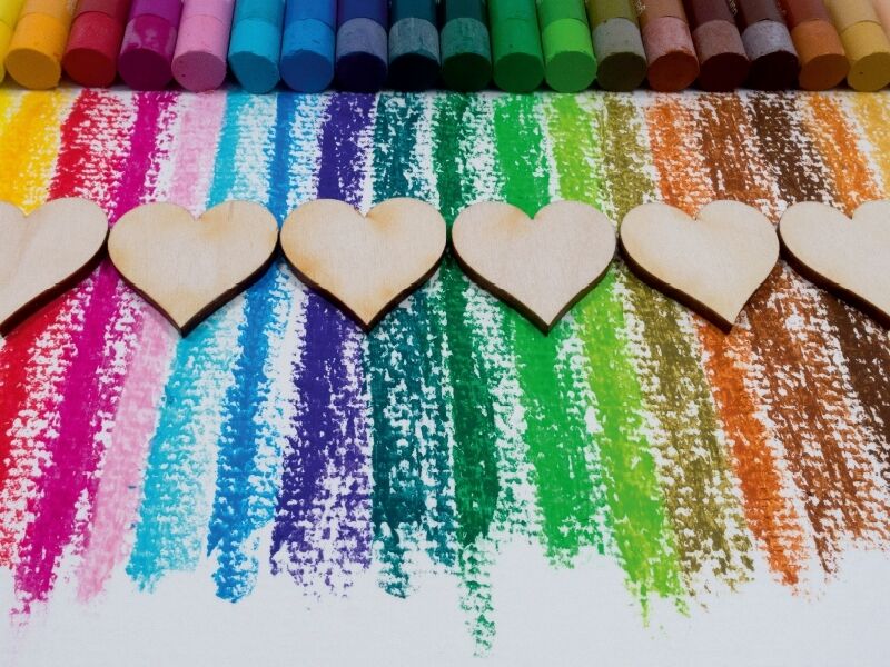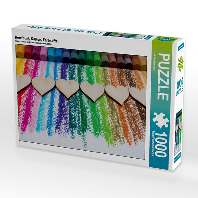 Herz bunt, Karton, Farbstifte (Puzzle)