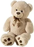 Aus flauschigem Plüsch, beige, mit braunen Fußtatzen, brauner Plüschnase und einer braunen Schleife, weichgefüllt, Farbe beige